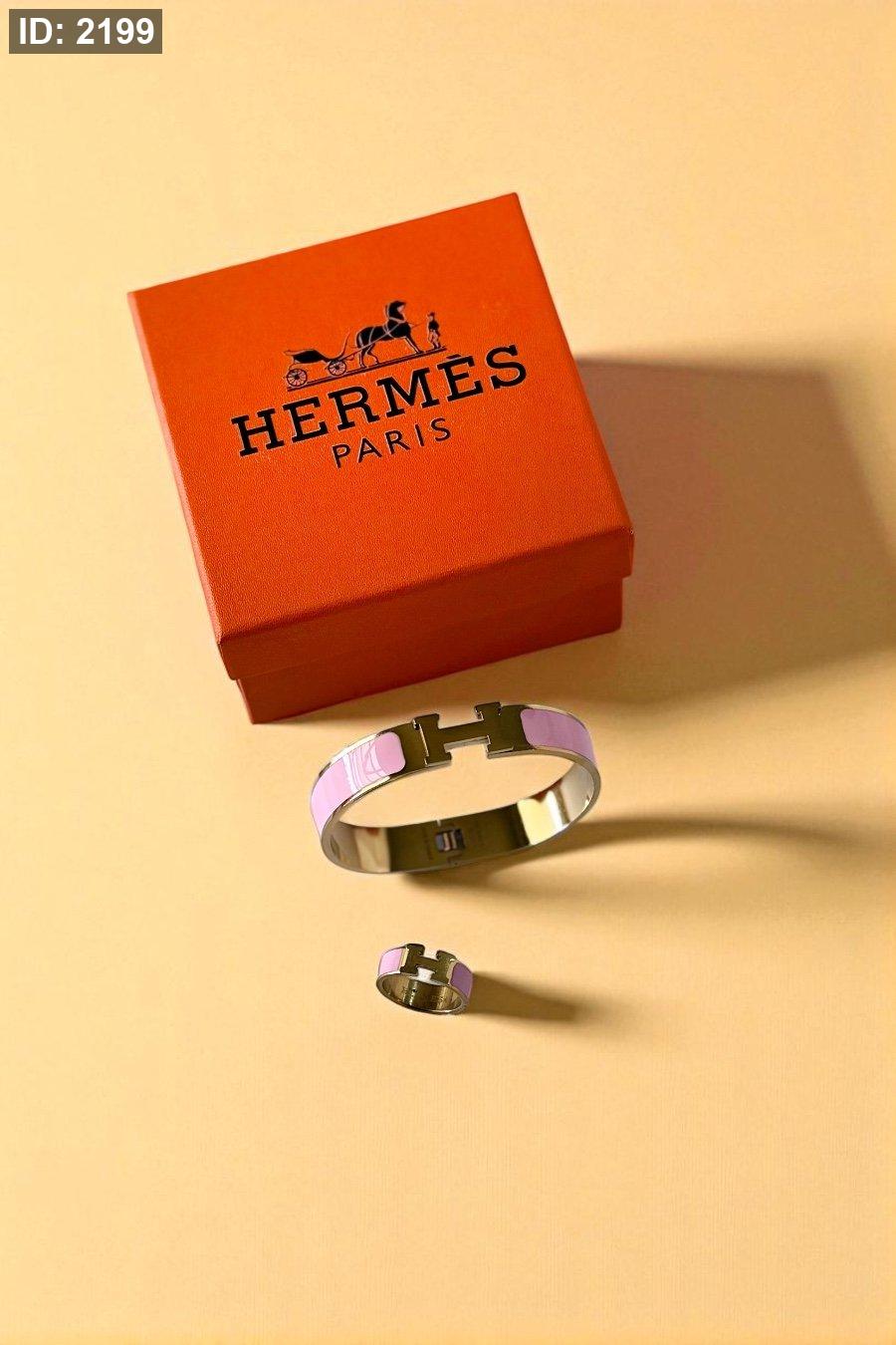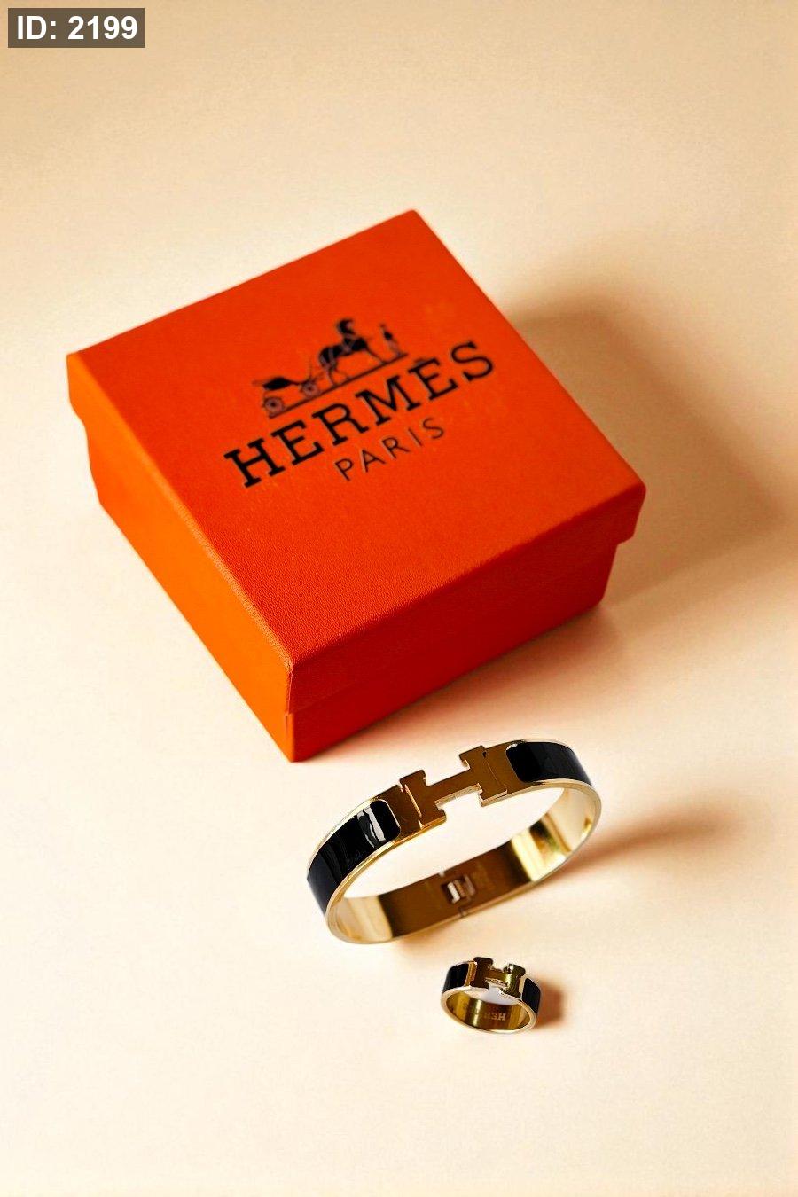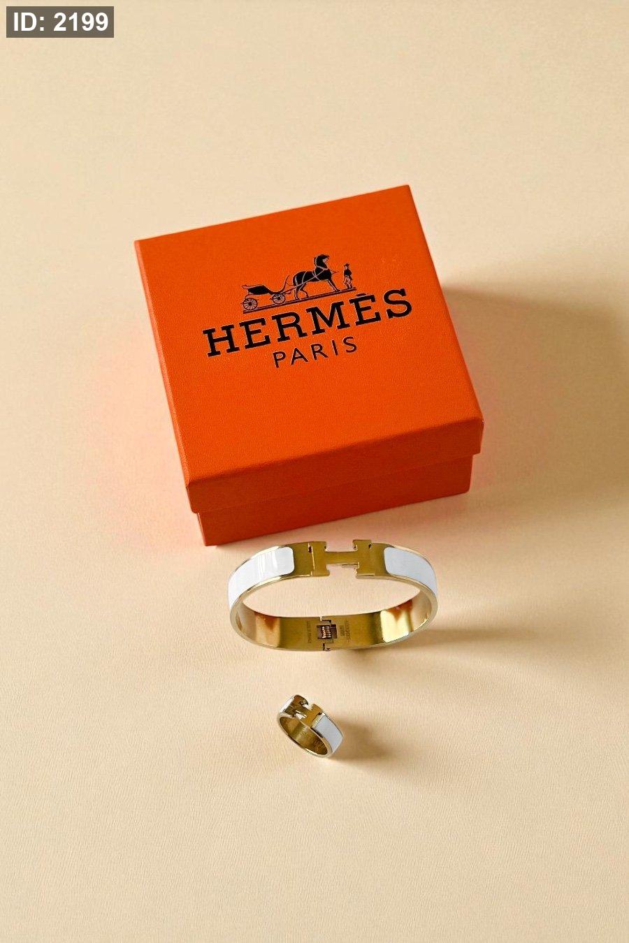 طقم هيرمز ( اسوارة + خاتم ) / تختيم شركة / شامل العلبة