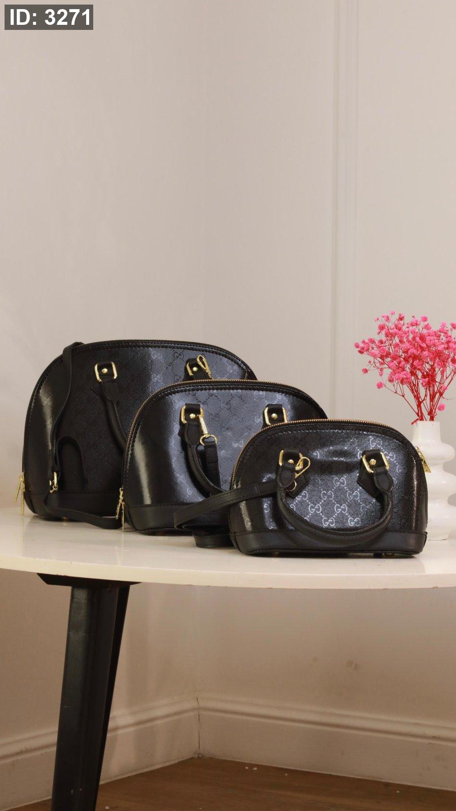 شنطة - جوتشي هرمي نقشة أسود / ٣ مقاسات